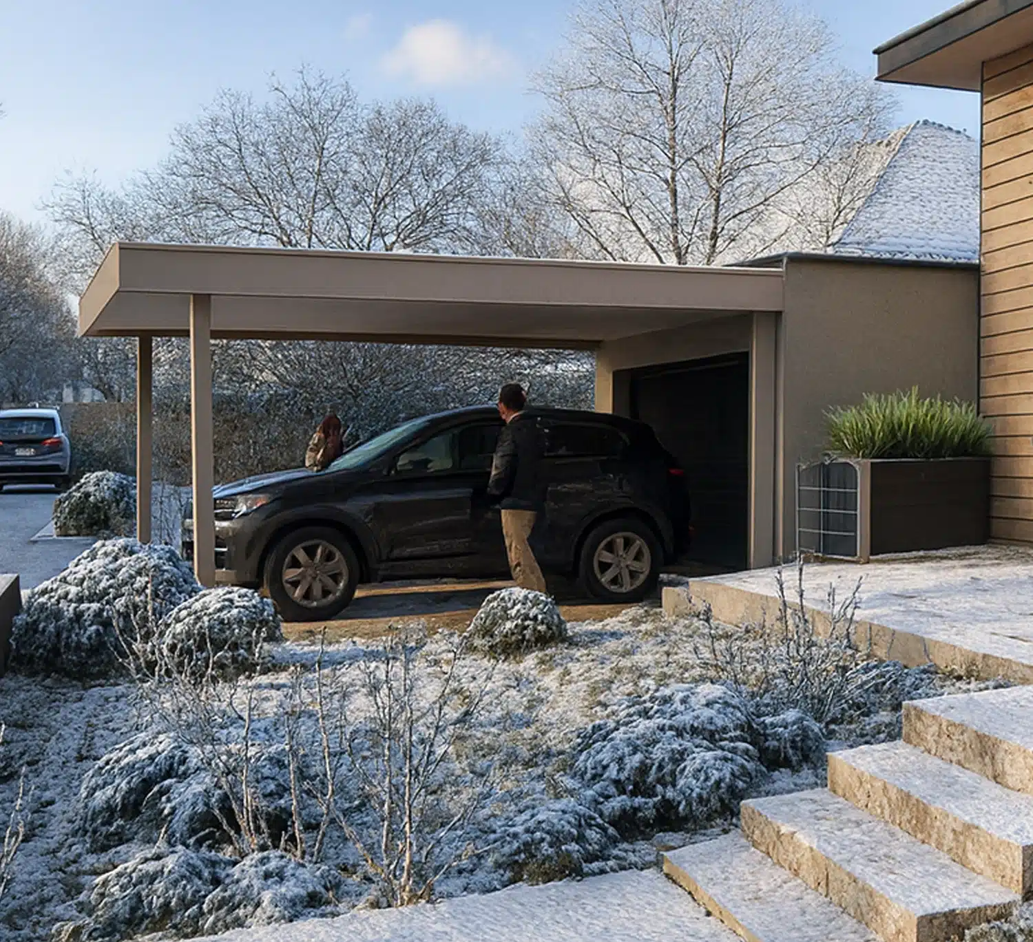 Un carport protège les véhicules contre la pluie, la neige et le soleil. Cela contribue à prolonger la durée de vie de la peinture et à prévenir la formation de rouille.